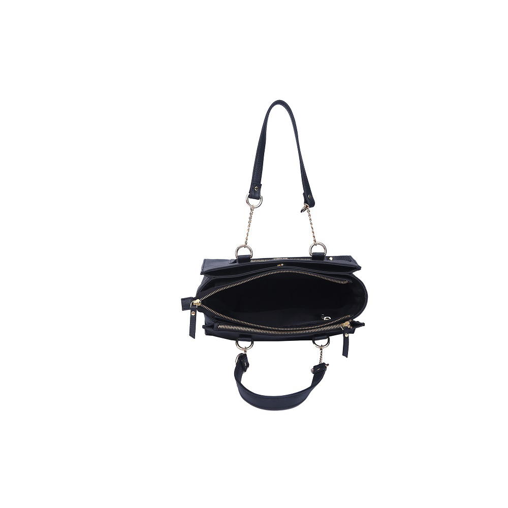 Fashionable Small Tote: Multiple Zip Compartments, Adjustible Shoulder Strap, 24 Karat Gold Plated Fittings.