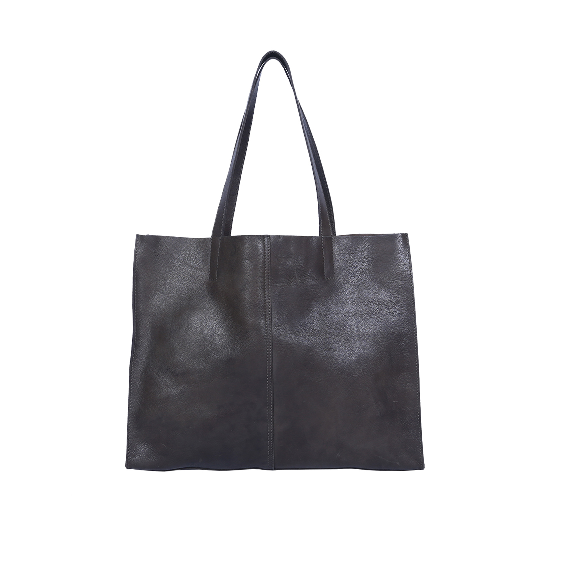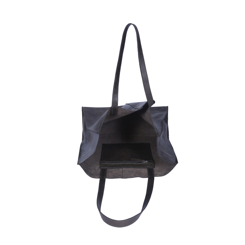 Classic Unlined Tote Bag: Spacious, Open Top, Washed Veg Tanned Cow Leather, Inner Pocket